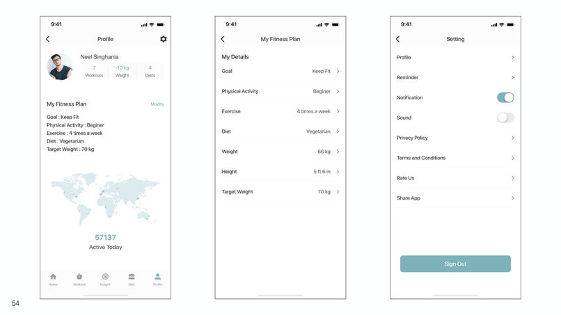 Individuals lose track of their eating habits and physical inactivity as a result of their hectic lifestyle, which results in unhealthy practices. here is a need for personalised plans to held people with various disorders. Certain medical conditions are frequently misdiagnosed or under treated, posing significant health risks. Paying attention to the moment-to-moment experience of eating, sitting; and water intake can assist in improving diet managing food cravings, and even losing unhealthy weight. Login and create an account Track nutrition, calories, water intake, day to day progress. etc. pain diagnosis and treatment. Information and guideline on general Lifestyle problems and Research & Insights Design research helps us identify and prove or disprove our assumptions, find commonalities across our target audience members, and recognise their needs, goals, and mental models.
